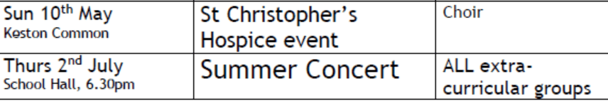 Usual lunch rehearsals will take place up until the concert.