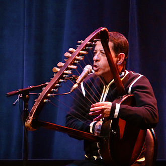 The simsimiyya is a traditional plucked lyre used in Egypt, Jordan and Yemen. In Egypt it is traditionally used to accompany a dance called bambutiyya.
