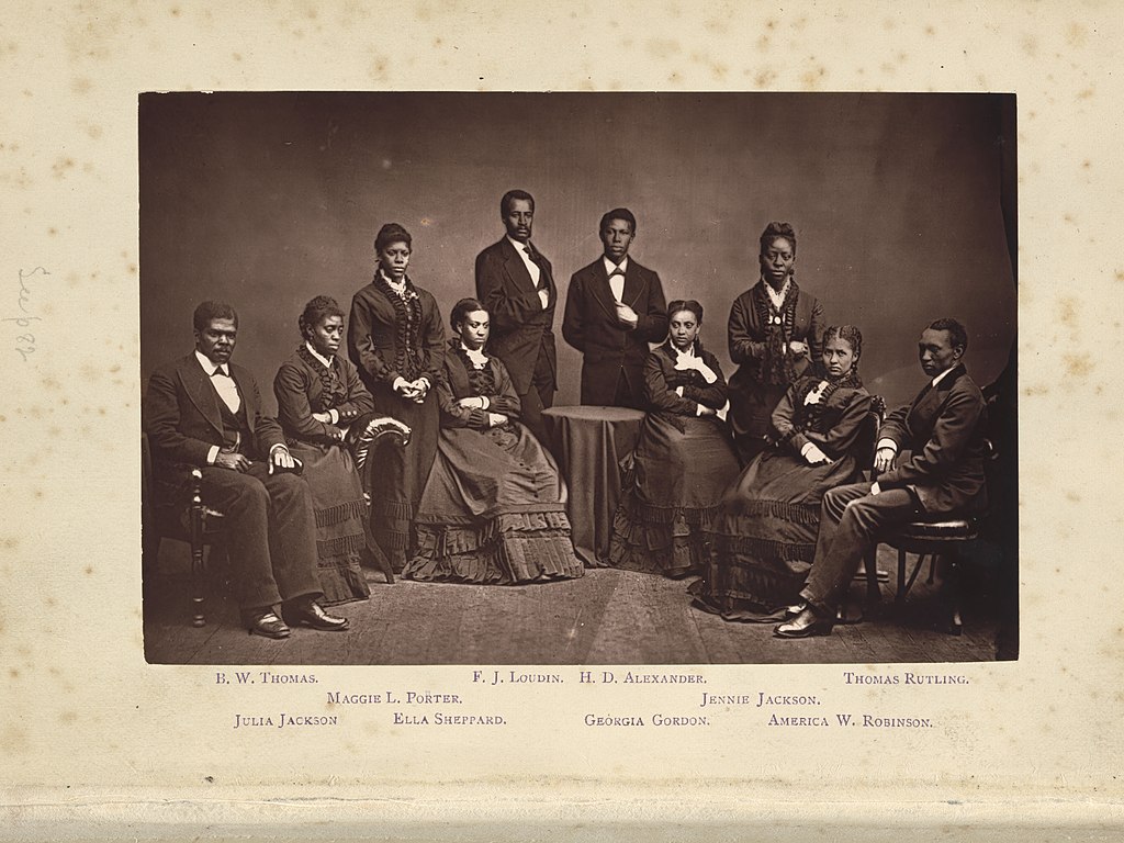 The Fisk Jubilee Singers are an African-American a cappella ensemble, consisting of students at Fisk University. Vocal performances without instrumental accompaniment are called a cappella. The first group was organised in 1871 to tour and raise funds for the college. “Swing Low, Sweet Chariot” is an another famous spiritual. The earliest known recording of this spiritual was in 1909.