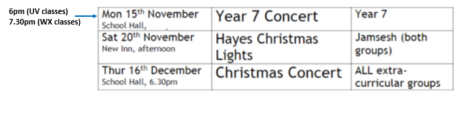 Please make sure you attend all rehearsals this term and remember to let the organiser know if you are unable to attend.