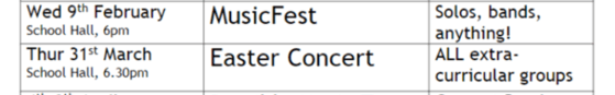 Rehearsals: On Sunday afternoons in March and April as well as every Tuesday during term time at the following times: