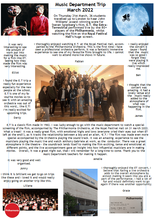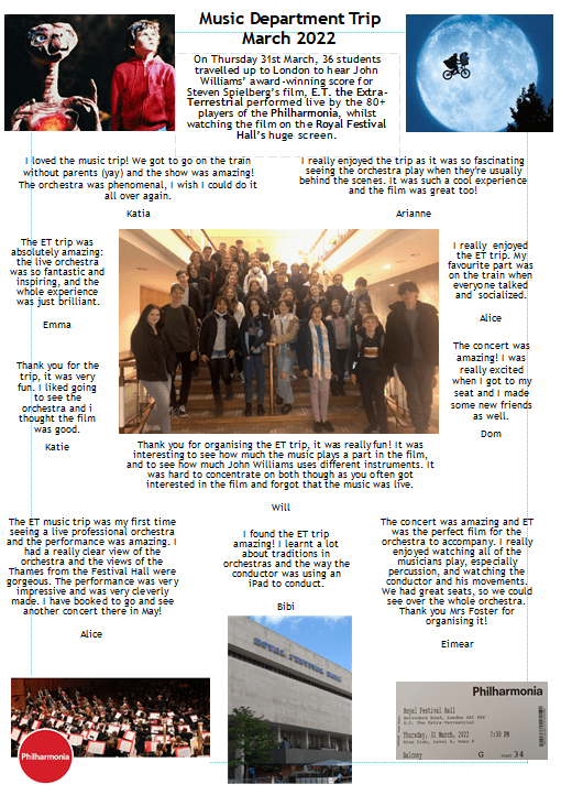 Look out for them in the next school newsletter (and spot them in one of the music corridor displays too).