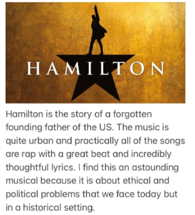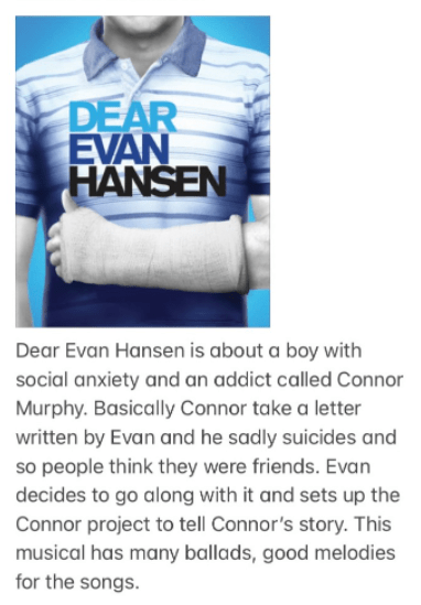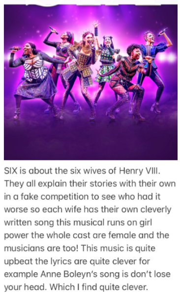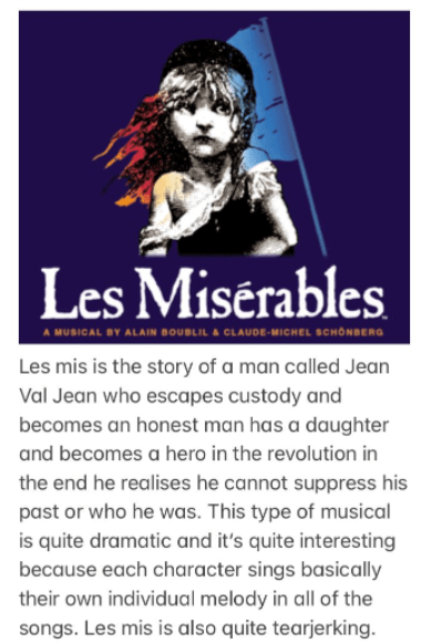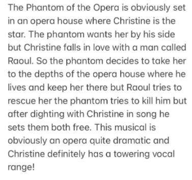 As many of you will know, Bibi is a HUGE fan of musicals. Here are her top 5 favourites and why she likes them: