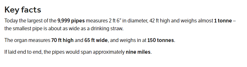 The Henry Willis Organ situated in the Royal Albert Hall in London is the second largest pipe organ in the United Kingdom, after the Liverpool Cathedral Grand Organ. It has 147 stops and 9,999 pipes.