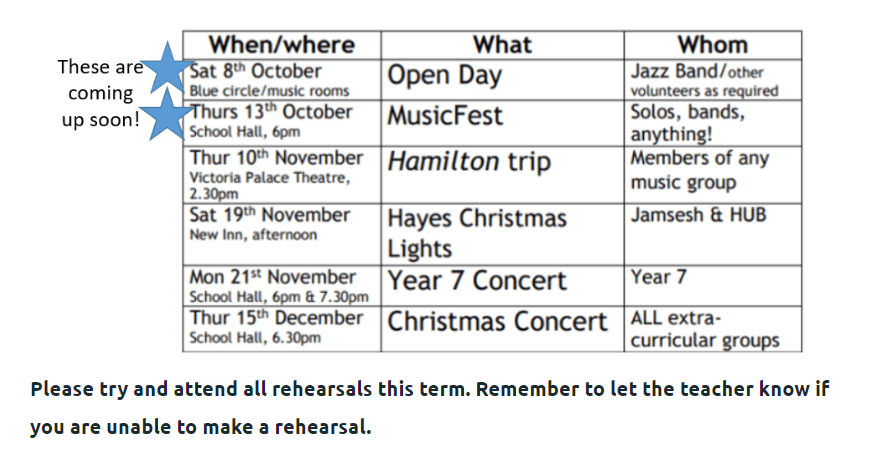 Thank you to those of you who have signed up for Hamilton and/or Music Tour. There are still some places for music tour. Please encourage those who you know would have received the tour letter to come along as we need at least 40 students for the trip to go ahead. WE REALLY WANT TO TAKE YOU ON TOUR NEXT YEAR!
