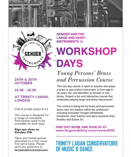 Music Opportunities – brass and percussion course for young people who identify as female or non-binary