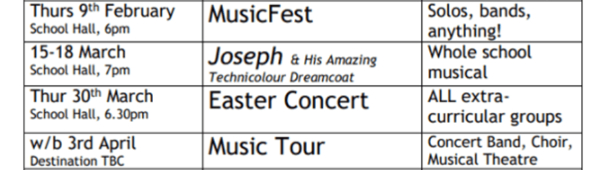 Music department events this term:
