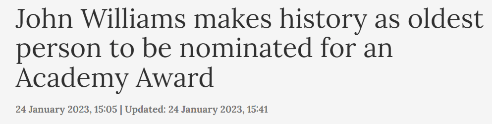 At 90 years old, John Williams has once again made Oscars history, becoming the oldest person to be nominated for a competitive Academy Award.