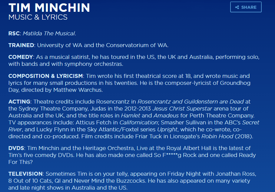 In the meantime, have a look at this video by Tim Minchin. He wrote the music and lyrics for Matilda The Musical.