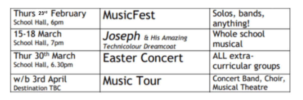 Please click here to be taken to the Musical Theatre page. Here you’ll find links to this term’s pieces so you can sing along at home when practising.