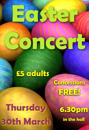 The Easter concert is only two weeks away. All our extra-curricular groups are performing at this event so please practise your parts carefully.