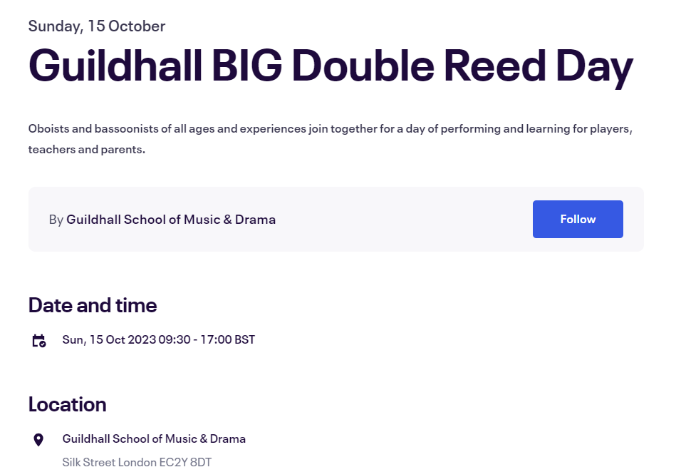 Visit Guildhall School of Music & Drama on Sunday 15 October 2023 for our BIG Double Reed Day.
