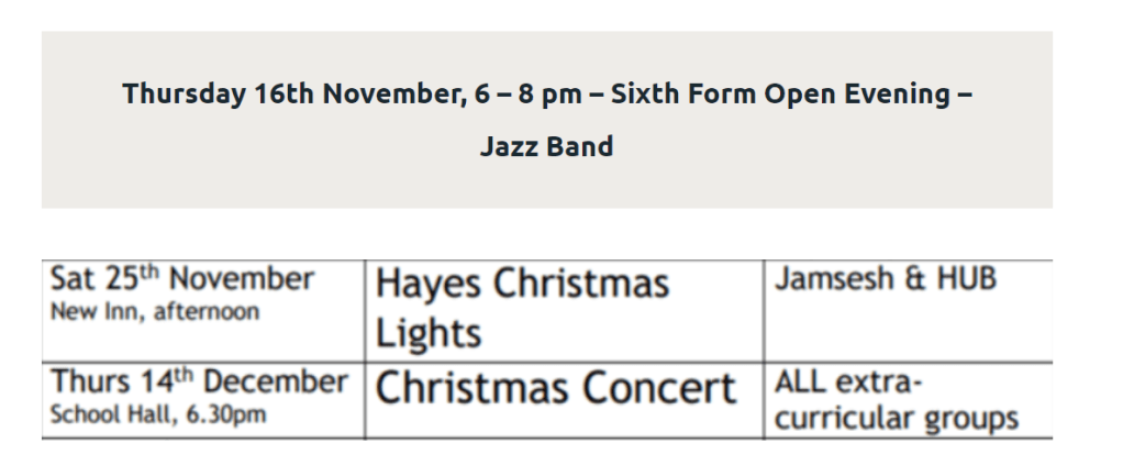 HUB REMINDER: The rehearsal on Friday 17th November is just for those of you who feel you would benefit from some extra help with the chords for our two chosen songs.