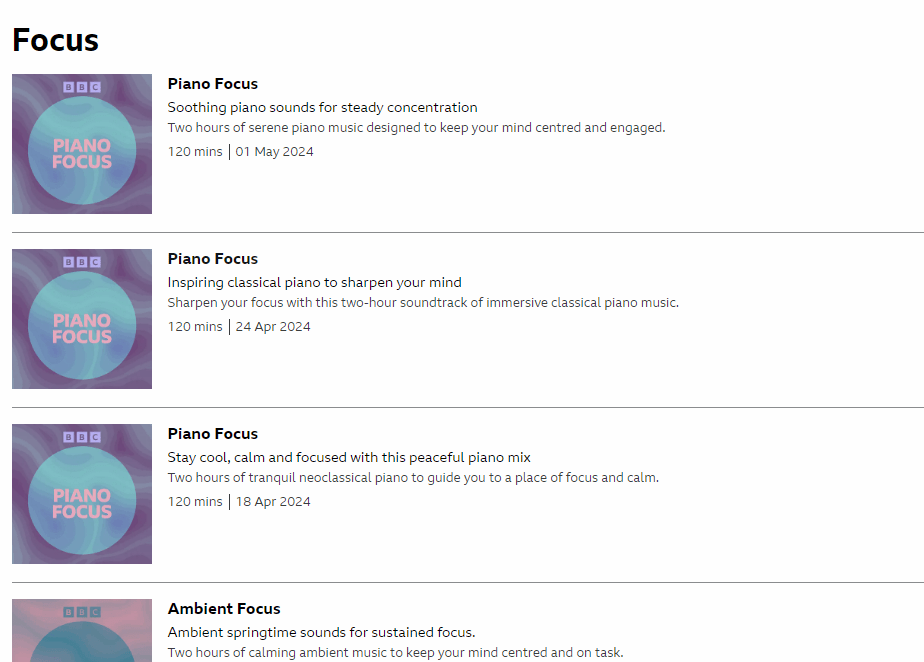 There are lots of playlists on BBC Sounds to help you keep calm and focussed: