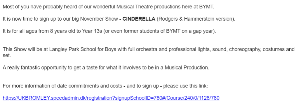 Please click here to be taken to the Musical Theatre page. Here you’ll find links to this term’s songs so you can sing along at home when practising.