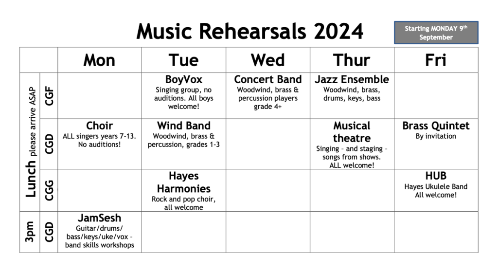 If you would like to be considered for the role of a Music Leader you will need to complete this quick form. To be eligible, you will need to be a member of at least two music clubs. We are looking for people who are committed and tuned in. By that, we mean people who come to rehearsals really regularly, check the blog, answer their emails and generally know what’s going on. All year groups welcome.