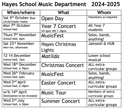 Please click here to be taken to the Hayes Harmonies page. Here you’ll find links to this term’s songs so you can sing along at home when practising.