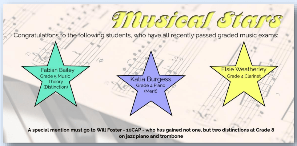 Please click here to be taken to the Concert Band page. Here you’ll find links to this term’s pieces so you can play along at home when practising.