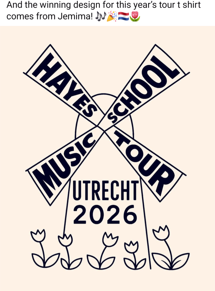 Well done to Jemima in year 12 for this year’s fab design for our tour t shirts.